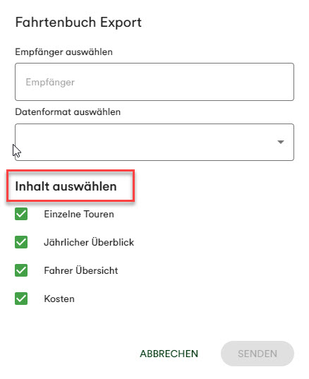 Wichtig: Für den Export müssen alle Fahrten in diesem Zeitraum bearbeitet sein.