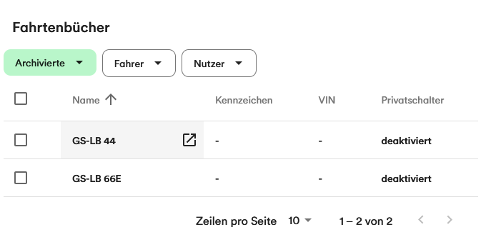 - Anschließend sehen Sie bereits archivierte Fahrtenbücher